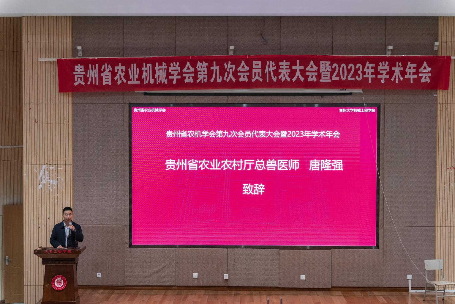 中國農(nóng)業(yè)機械學(xué)會秘書長趙鳳敏研究員、貴州省農(nóng)業(yè)農(nóng)村廳總獸醫(yī)師唐隆強致辭,貴州大學(xué)常務(wù)副校長張大林教授致歡迎辭,開幕式由貴州大學(xué)機械工程學(xué)院院長趙津教授主持。